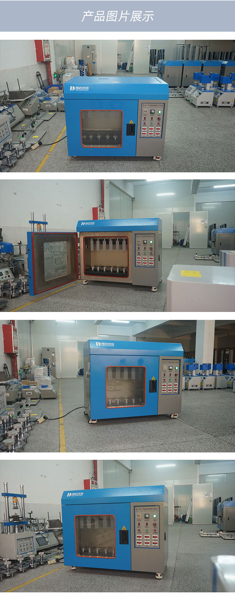 6組恒溫膠帶保持力試驗儀,將試樣膠帶在一定溫度和一定的荷重下,對膠帶的粘合力做靜態負荷試驗,通過膠帶貼合的保持時間,以判斷膠帶持粘性。