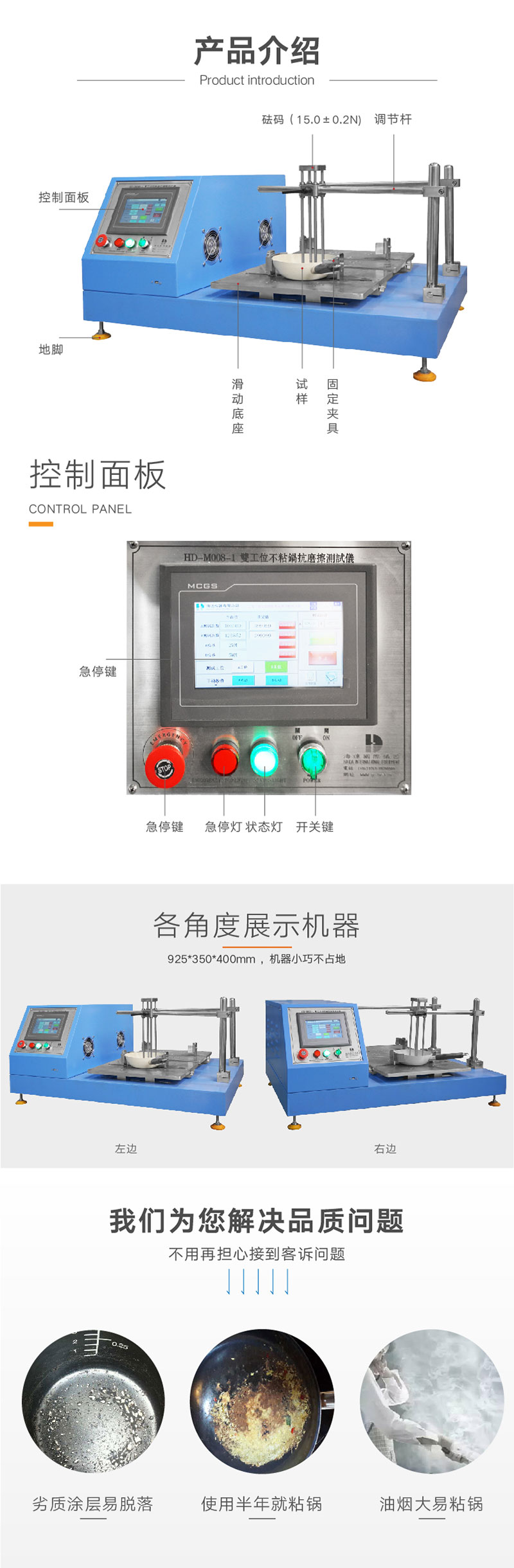 主要用于對(duì)鍋類涂層進(jìn)行耐磨耗實(shí)驗(yàn)評(píng)估