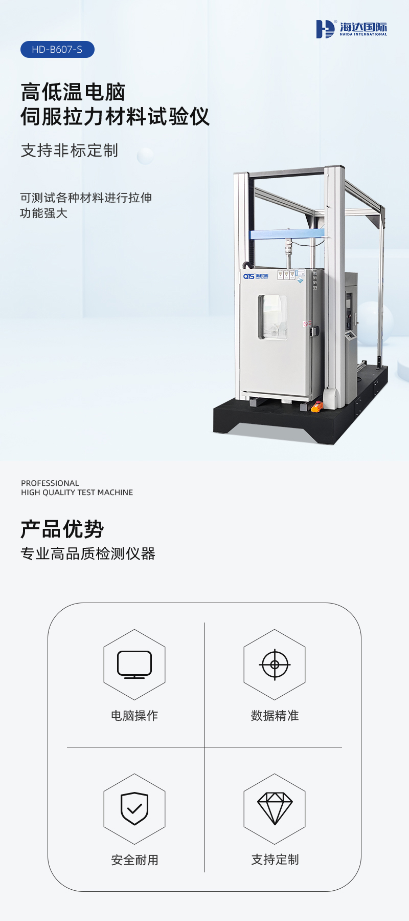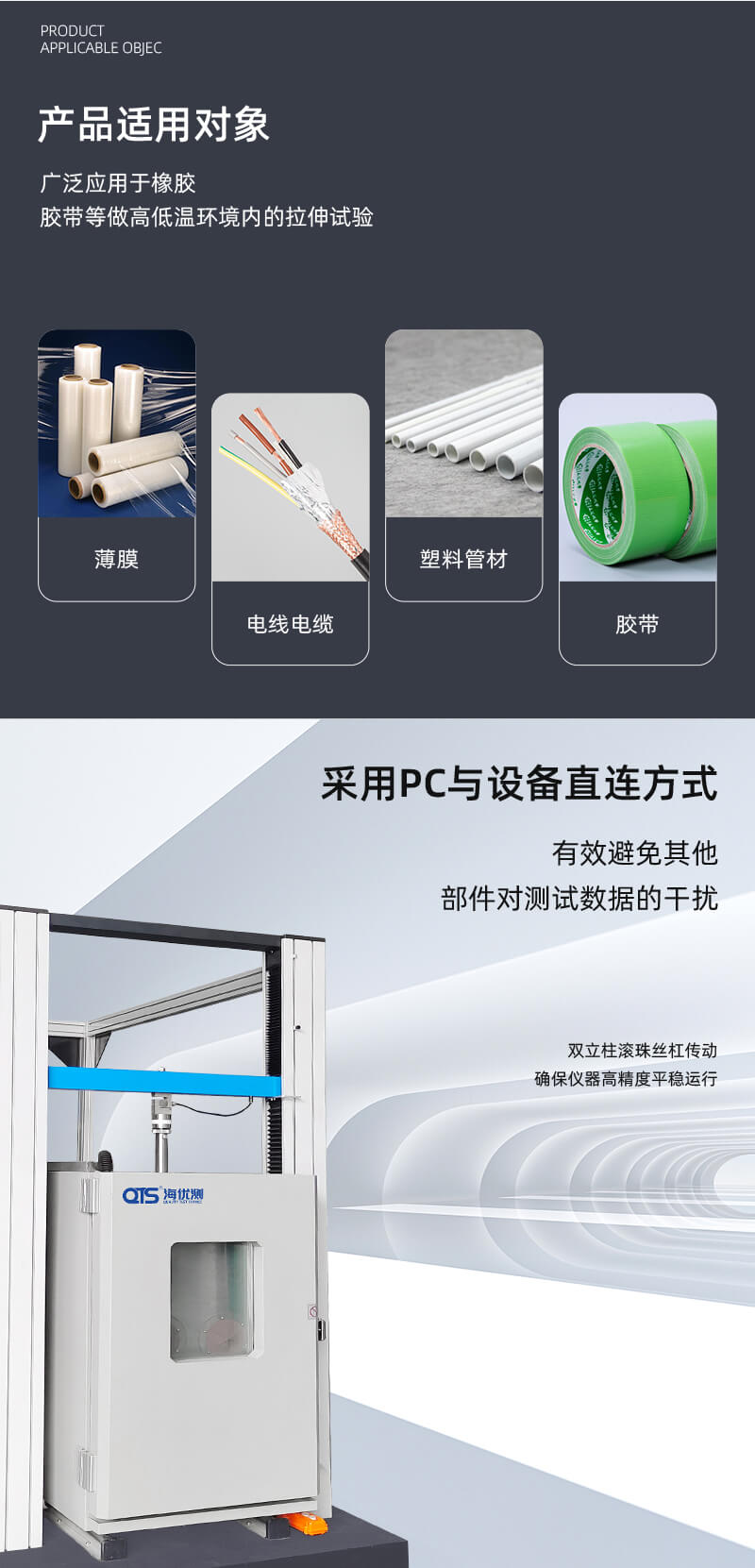 高低溫拉力機廣泛應用于橡膠,膠帶等做高低溫環境內的拉伸試驗。